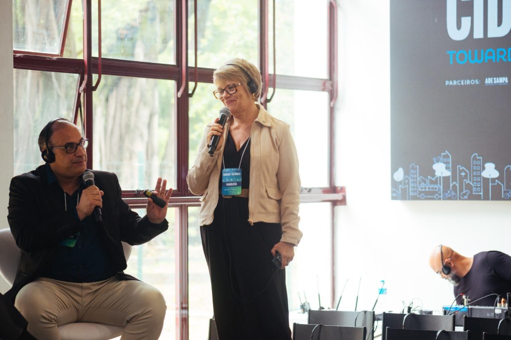 O painel foi moderado por Daniel de Lima, chefe de Assessoria Técnica do Gabinete da Secretaria Municipal do Verde e Meio Ambiente de São Paulo, e contou também com as participações de Fred Guidoni, presidente da Associação Paulista de Municípios (APM); Giovanna Idalgo Oliveira, coordenadora da Câmara Técnica de Meio Ambiente do Consórcio Intermunicipal da Região Oeste Metropolitana de São Paulo (CIOESTE) e chefe de Meio Ambiente da Prefeitura de São Roque; Livia Stefania Rosseto, coordenadora de Programas e Projetos de Meio Ambiente do Consórcio Intermunicipal Grande ABC; e Bazileu Margarido, consultor da Frente Nacional de Prefeitas e Prefeitos (FNP).