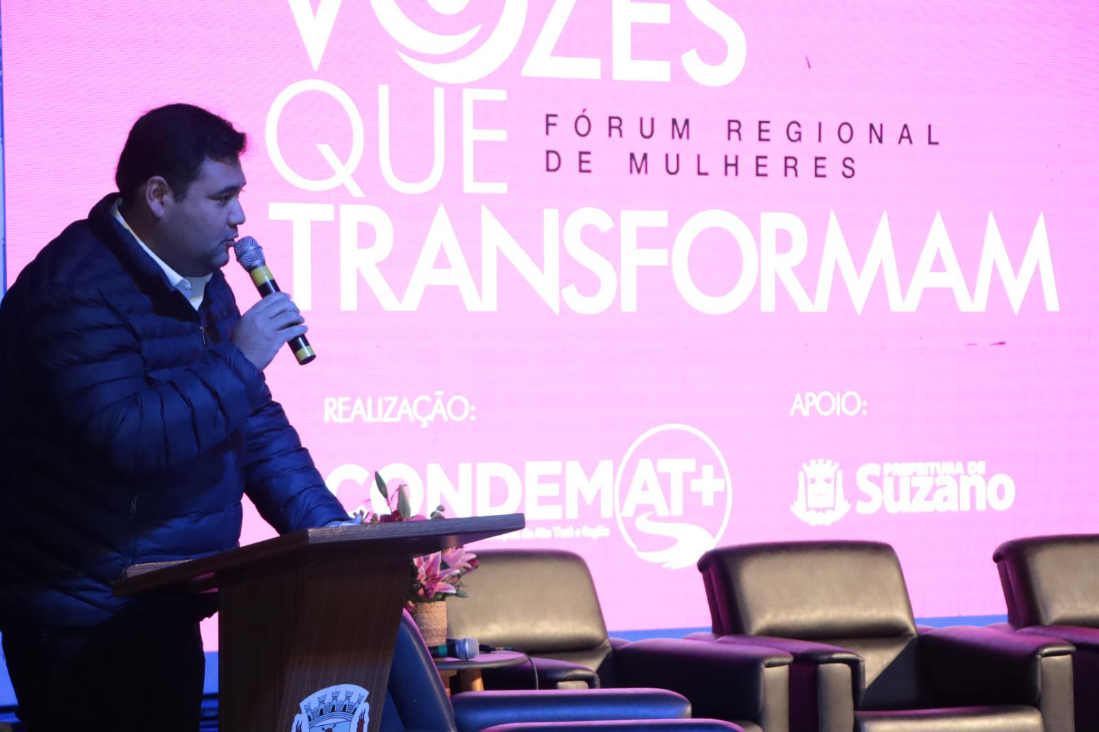 O prefeito de Suzano, Pedro Ishi, destacou o protagonismo regional do CONDEMAT+ na promoção de iniciativas integradas. “É uma honra para Suzano sediar esse fórum pioneiro, que coloca em pauta temas urgentes e nos permite compartilhar experiências e estratégias entre os municípios. A união entre as cidades do Alto Tietê fortalece nossas políticas e amplia o alcance das ações em prol da dignidade e das oportunidades para todas as mulheres.”