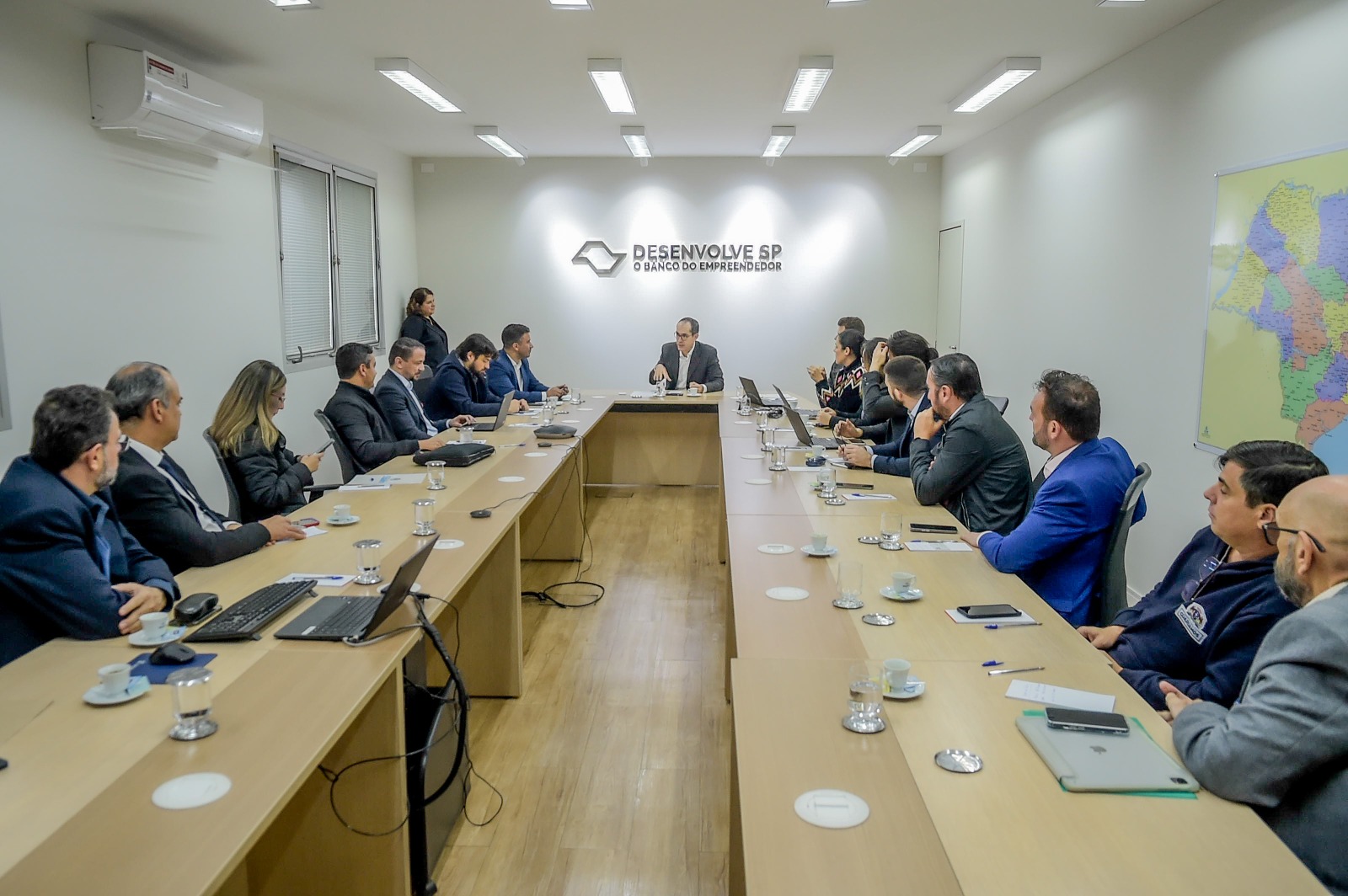 “Juntos, a capacidade de projeto aumentará, eliminando as dificuldades que os municípios pequenos têm. Vamos fazer dar certo pelo consórcio”, disse o presidente da Desenvolve SP, ao lado da equipe de superintendentes e gerentes de Negócios Públicos e Privados.